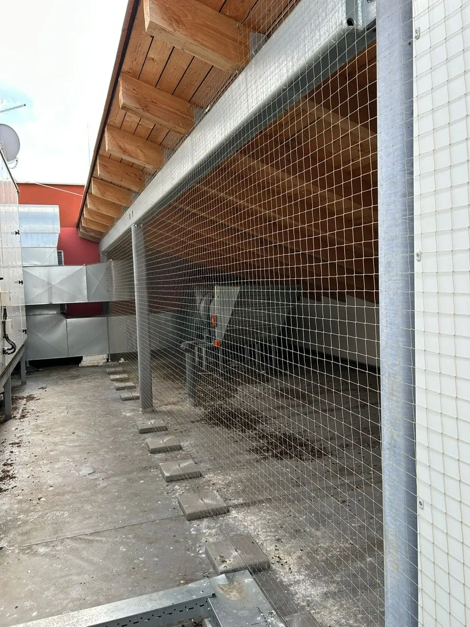 - Proti vnikání holubů do objektů můžeme provést namontování různých druhů sítí, které jsou vypnuty a přichyceny na natažený lankový rám.